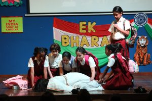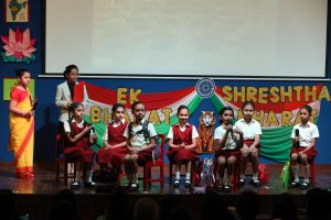 The students of Std. 3 and 4 lit up the stage with their vibrant act celebrating the spirit of *Ek Bharat, Shreshtha Bharat.* Through lively dances, melodious songs, and colourful presentations, the children beautifully showcased India’s rich culture, language, festivals, and unity.